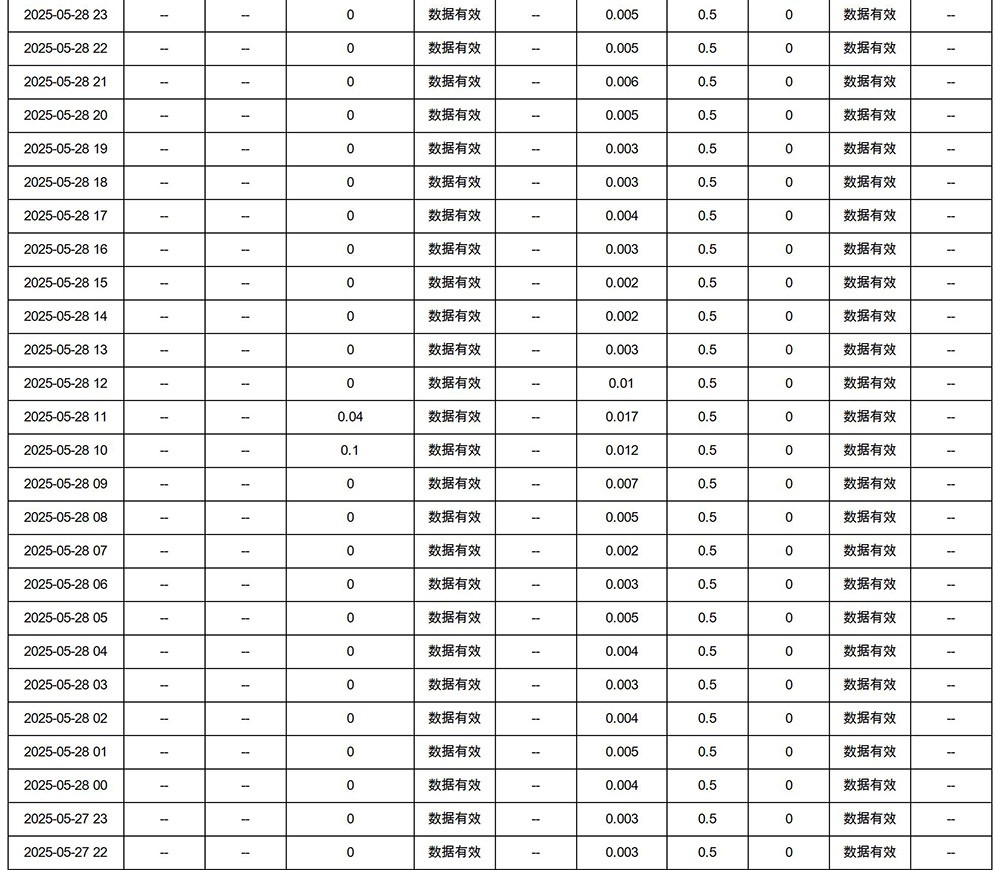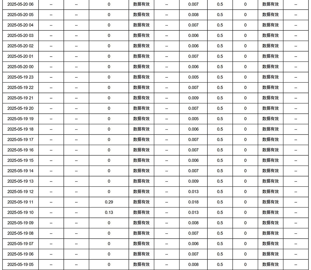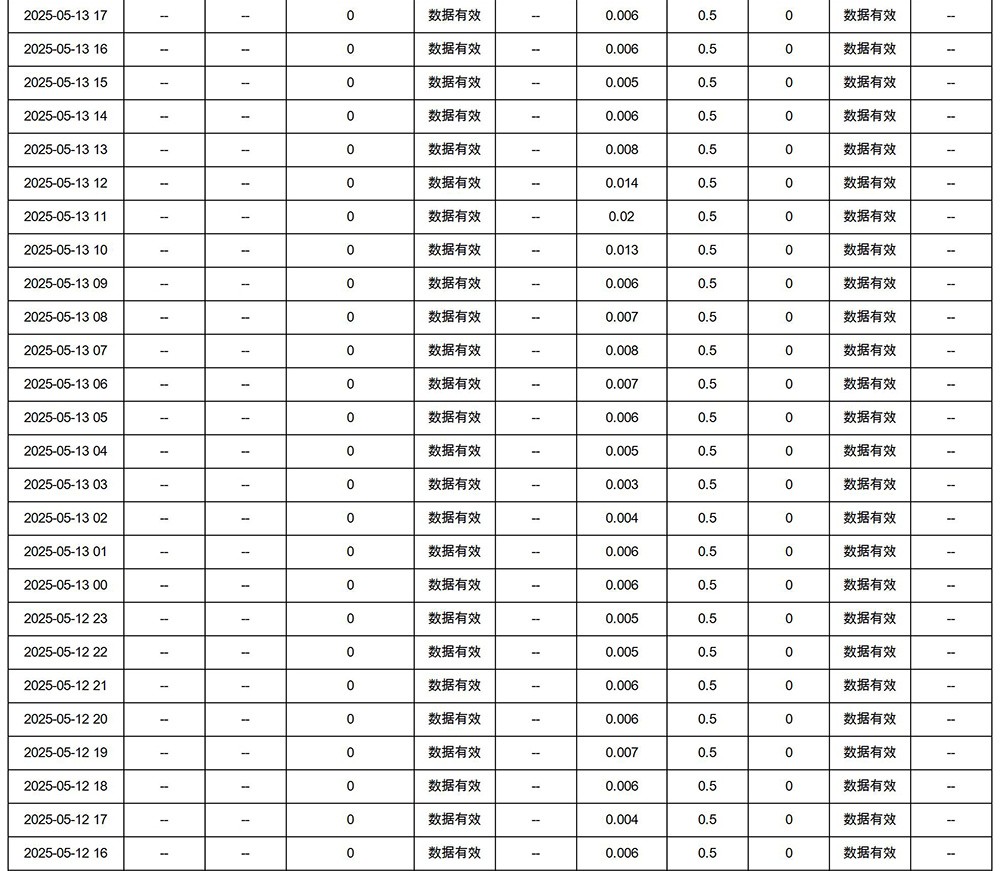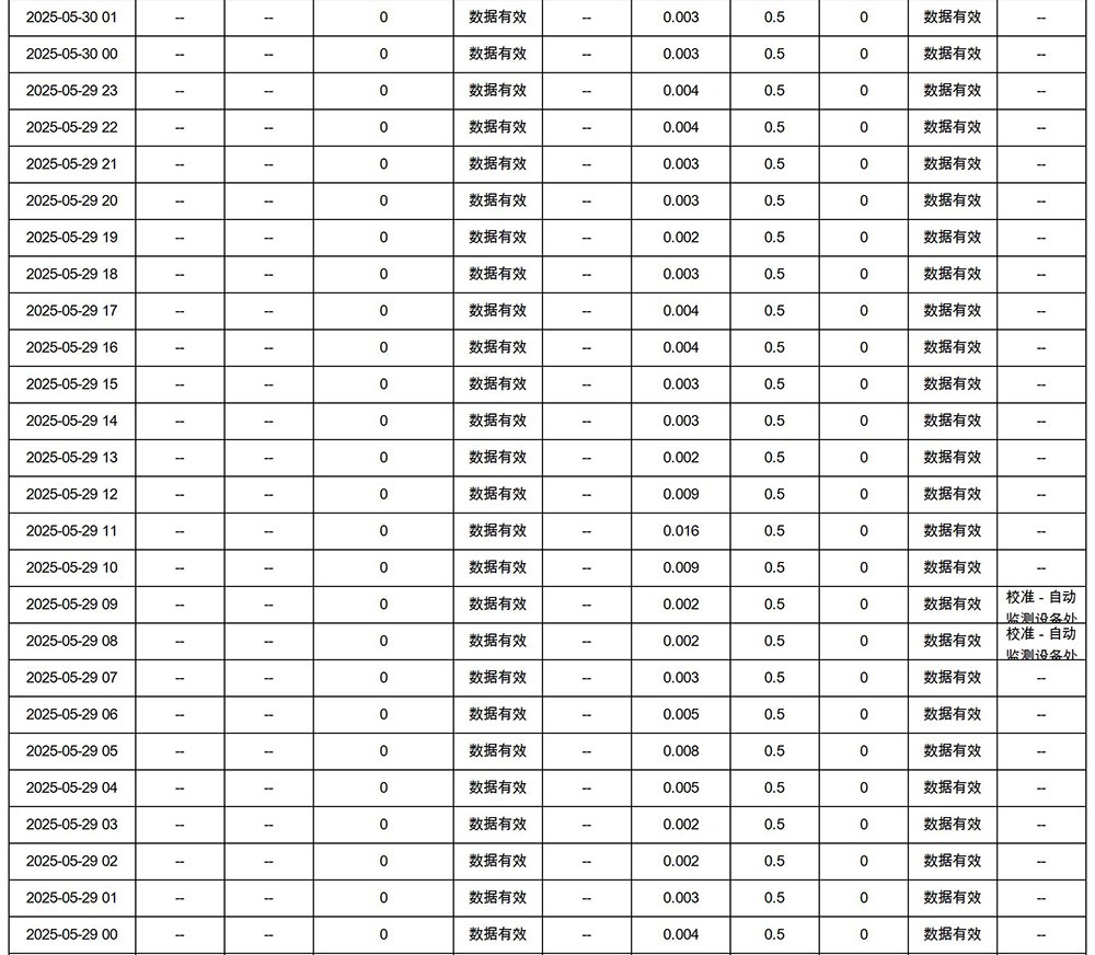 車間排口在線小時(shí)數(shù)據(jù)2025.5