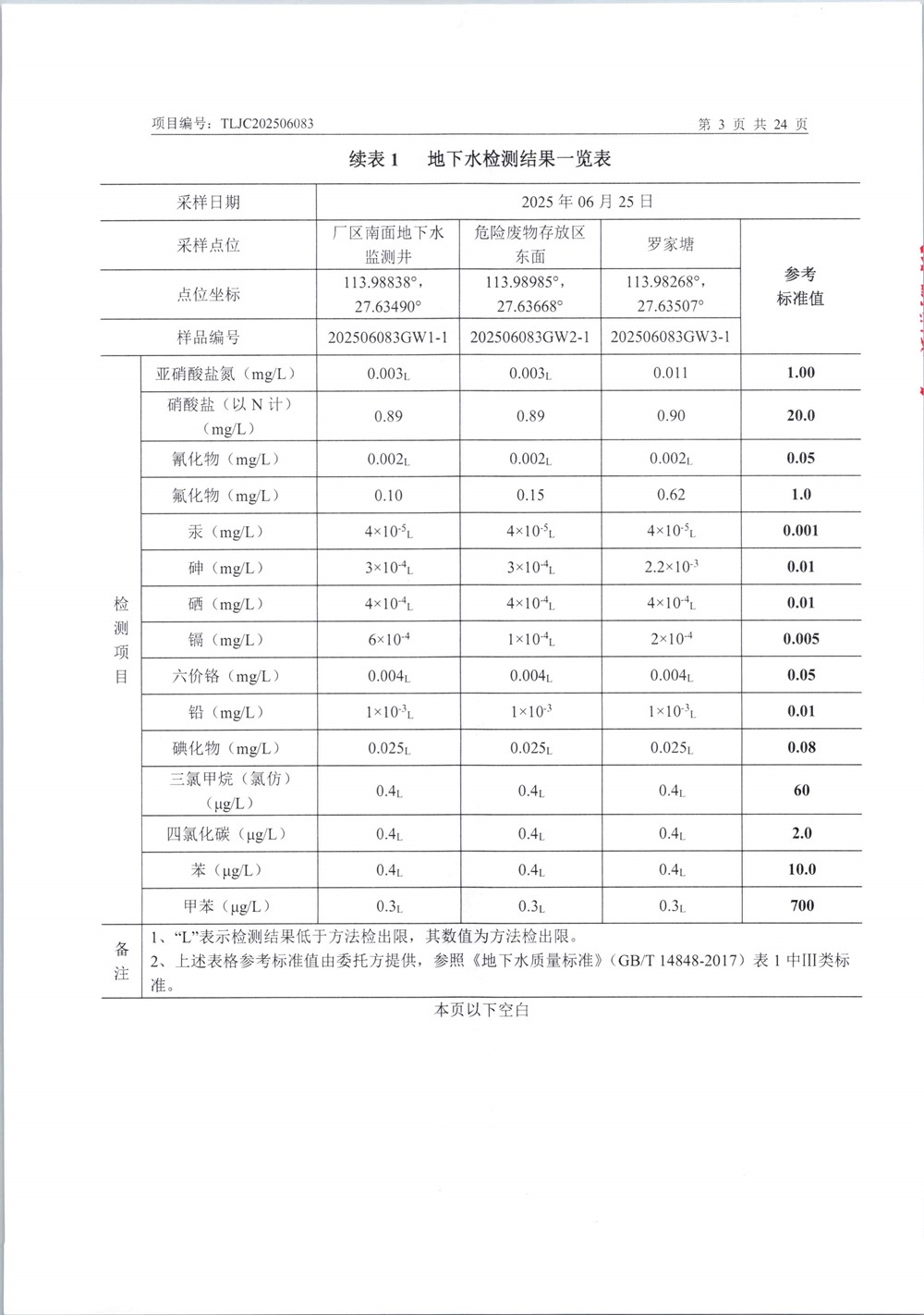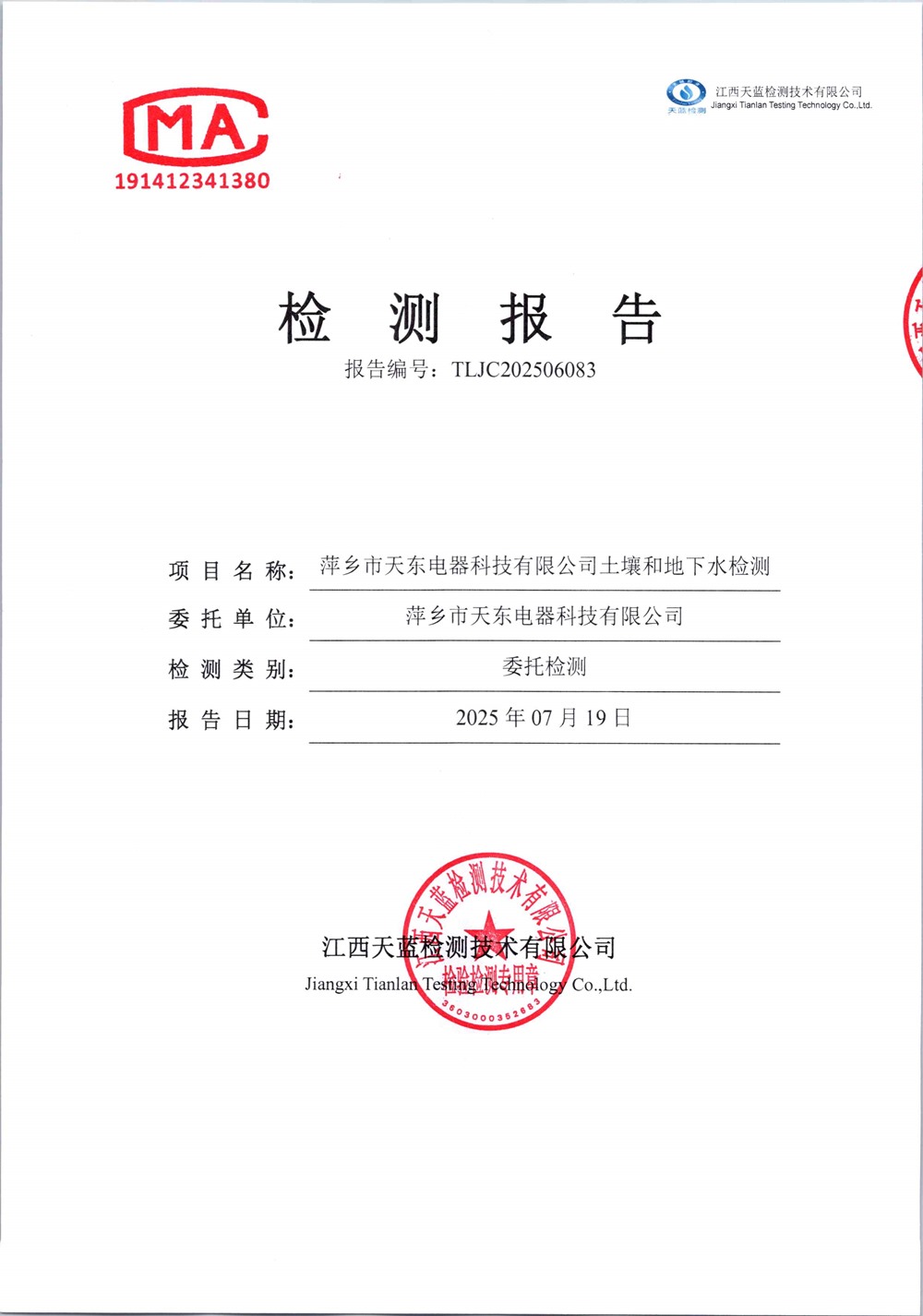 天東電器土壤和地下水檢測2025年